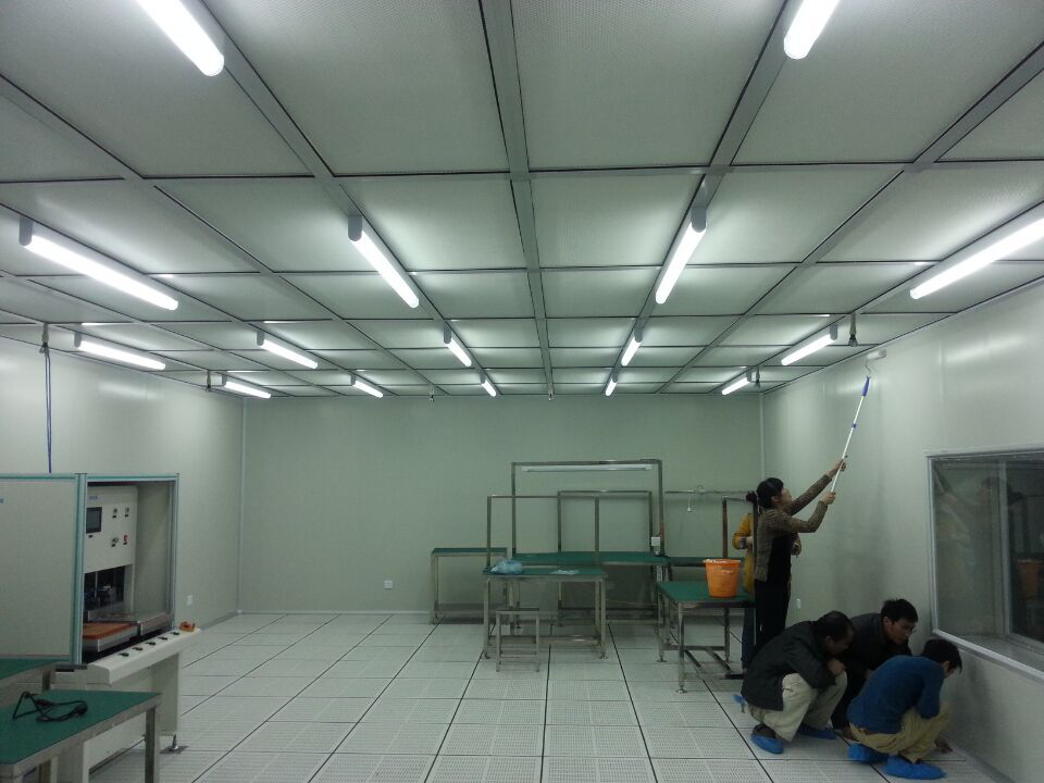 施工單位:凈化車間面積約為1500平方米,凈化要求為百級、千級和萬級,空調(diào)系統(tǒng)方案采用水冷直膨式恒溫恒濕空調(diào)機組+高效風口處理方式,百級采用FFU+AHU方式,工程內(nèi)容含彩鋼板結構裝修,潔凈空調(diào)系統(tǒng),工藝排風,環(huán)氧樹脂地板,LED照明系統(tǒng),空調(diào)配電及自控系統(tǒng),設計要求:溫度23±2℃,濕度55±5%,完工后各標無塵室指標均達到要求;完工后圖片如下: